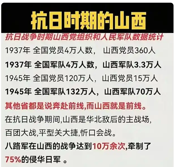 “十年不征山西兵”源于抗战时期山西军民惨烈的牺牲。1937-1945年,山西作为华北抗战主战场,以全省1/4人口(约300万)的代价牵制日军,每4个山西人就有1人牺牲。