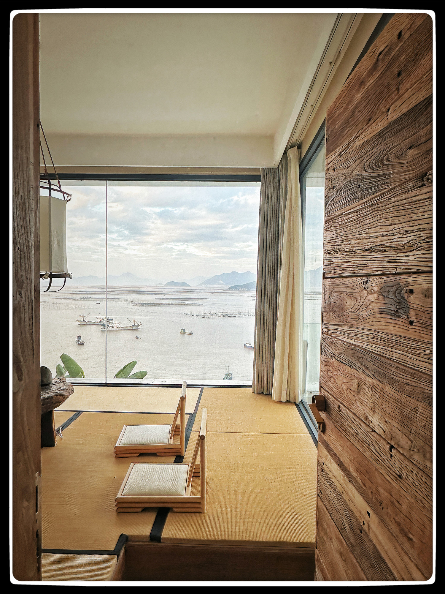 霞浦拾间海民宿位于福建霞浦三沙镇东壁村,坐拥270°无遮挡海景,是一家由北漂归来的设计师夫妻打造的现代轻奢生态海景民宿。这里面山靠海,每间房都配有观海落地窗,部分房间还可躺看日落,被誉为“东壁村最靓的风景线”。