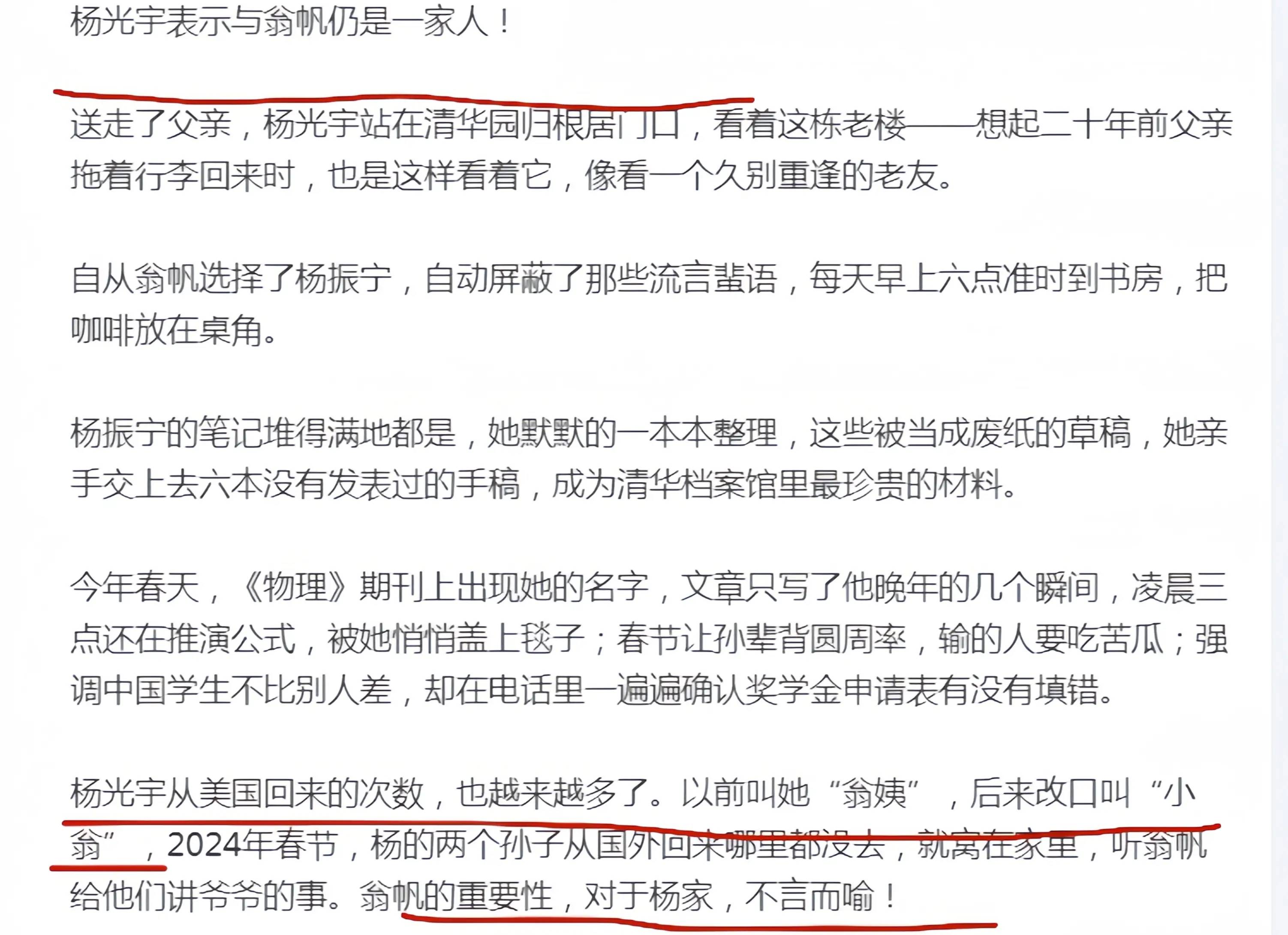 但出人意料的是,杨振宁次子杨光宇公开表示:“小翁仍然是我们一家人。”