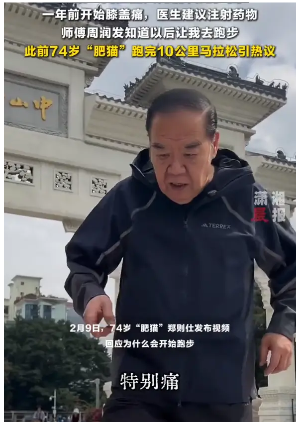 2月9日,74岁“肥猫”郑则仕发布视频回应为什么会开始跑步,郑则仕表示自己一年前开始膝盖痛,已经无法做到轻松下楼梯,医生建议其注射药物镇痛但是无法根治,且每隔4-6个月就要重新注射。