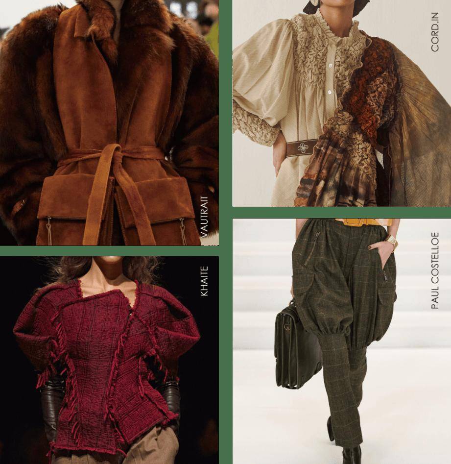 复古时尚及手工美学赋予牧野着装充满暖意的时尚表达。为了凸显游牧精神的自由灵魂,浓郁温暖的古韵色彩结合宽大廓形,共同构筑出粗犷的视觉基调。