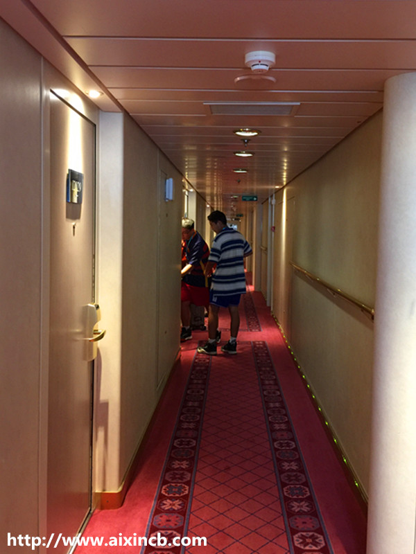 全船的人都在此,的确拥挤,所以您一定瞧好了,您的具体位置在什么地方,门后面的标示会告诉您所属地(见英文字母)。