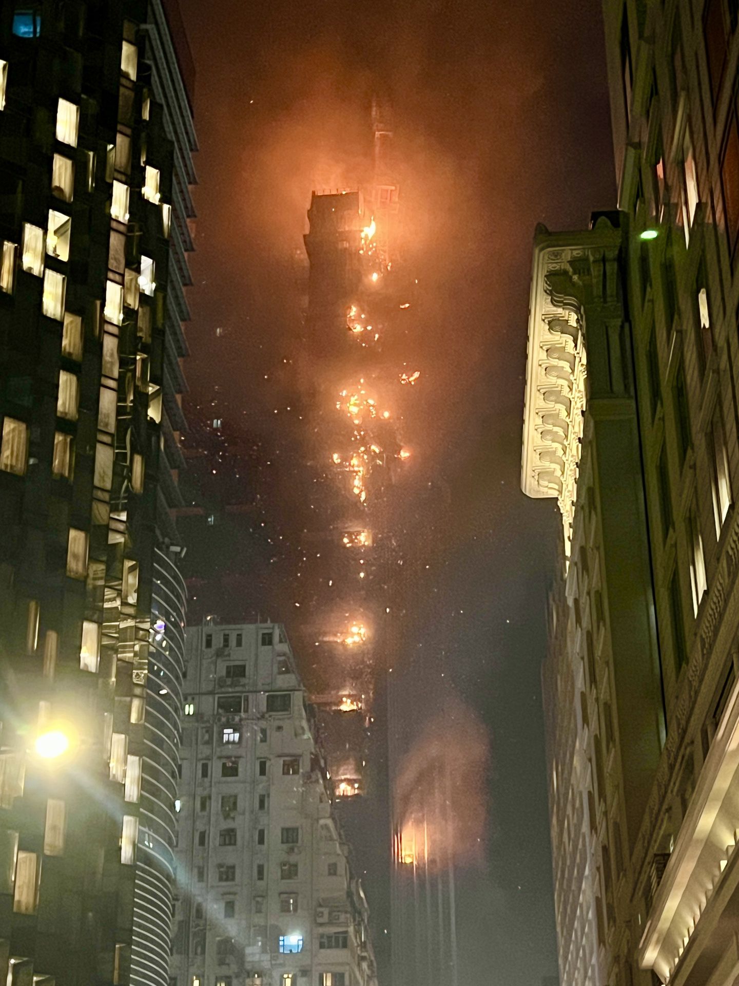 据香港警方介绍的火灾经过,这场近年来香港最严重的火灾起于一栋楼的低层围网,引燃发泡胶并快速蔓延,高温下,竹棚和棚网均起火燃烧。