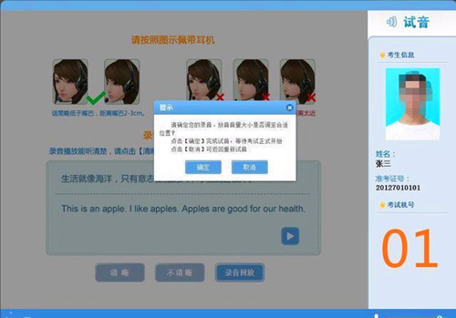 考生登录系统后进入试音环节。
