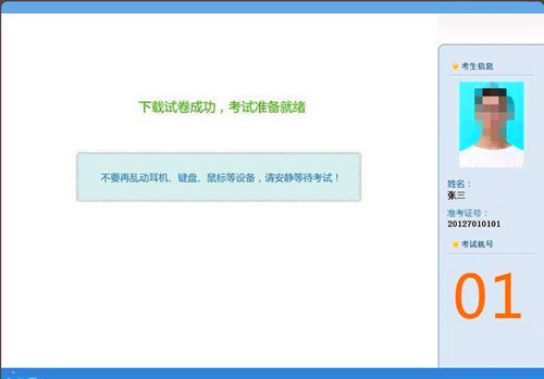 第五步:点击确定,完成试音环节,系统自动下载试卷。考生请安静等待系统管理员发出统一考试的指令。