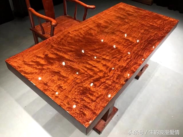 这些便是被业内人士尊称作为“帝王之木”的巴花实木大板,拥有这样的一片大板桌可以说是身份地位和财富的象征。