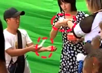 从曝光的照片可以看到,辛芷蕾身边的一男一女两个助理手上都拿着一张纸巾,她也确实做出了吐臭豆腐这个动作。
