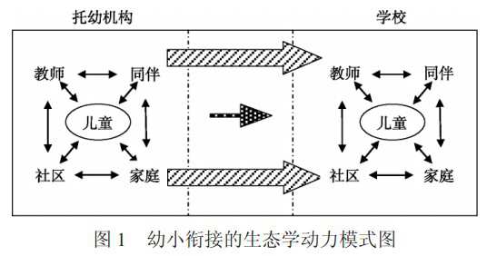 首先,要注重儿童所处生态系统对幼小衔接的影响,不要将幼小衔接的效果等同于仅仅强调儿童个体能力的“入学准备”。幼小衔接的生态学理论视角启示我们不应该仅仅看到儿童个体的入学准备对幼小衔接的影响,而应该认识到影响幼小衔接的因素是复杂的,儿童发展所在的生态系统,包括处在微系统的学校、托幼机构和家庭,外系统的家长工作、社会服务、健康保障等以及宏系统的社会文化价值观、政治制度等都对儿童的幼小衔接产生影响。因此,要加强儿童的幼小衔接,促进儿童更好地入学过渡,不能仅仅着眼于提高儿童的“入学准备”,而应该在家庭、学校、托幼机构、社区等多方面做好“准备”。做好幼小衔接,不仅仅是给即将进入小学的儿童插上“翅膀”,使他们能够达到小学的要求;“学校准备就绪”启示我们,更重要的是要填平托幼机构和小学之间的鸿沟,让学校为每一个儿童顺利适应小学做好准备。