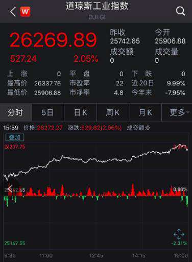 美股高开后继续迎接强力反弹。道琼斯工业指数上涨2.05%,时隔三个月后重新收复26000点关口。标普500指数上涨1.36%,纳斯达克指数上涨0.78%,距离3月23日的低点已累计反弹46%,距离历史最高点位的距离仅剩1.58%。标普指数和纳指均已实现日线4连阳。