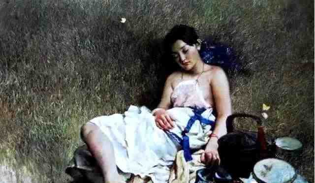 在其中一幅油画作品中,周迅半裸献身艺术。