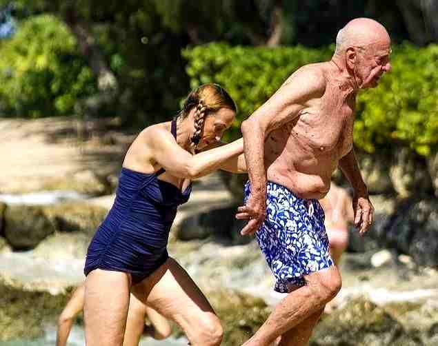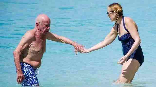 89岁默多克和63岁现任娇妻浪漫!海边嬉戏真甜,妻子扎麻花辫扮嫩。(来源:网络)