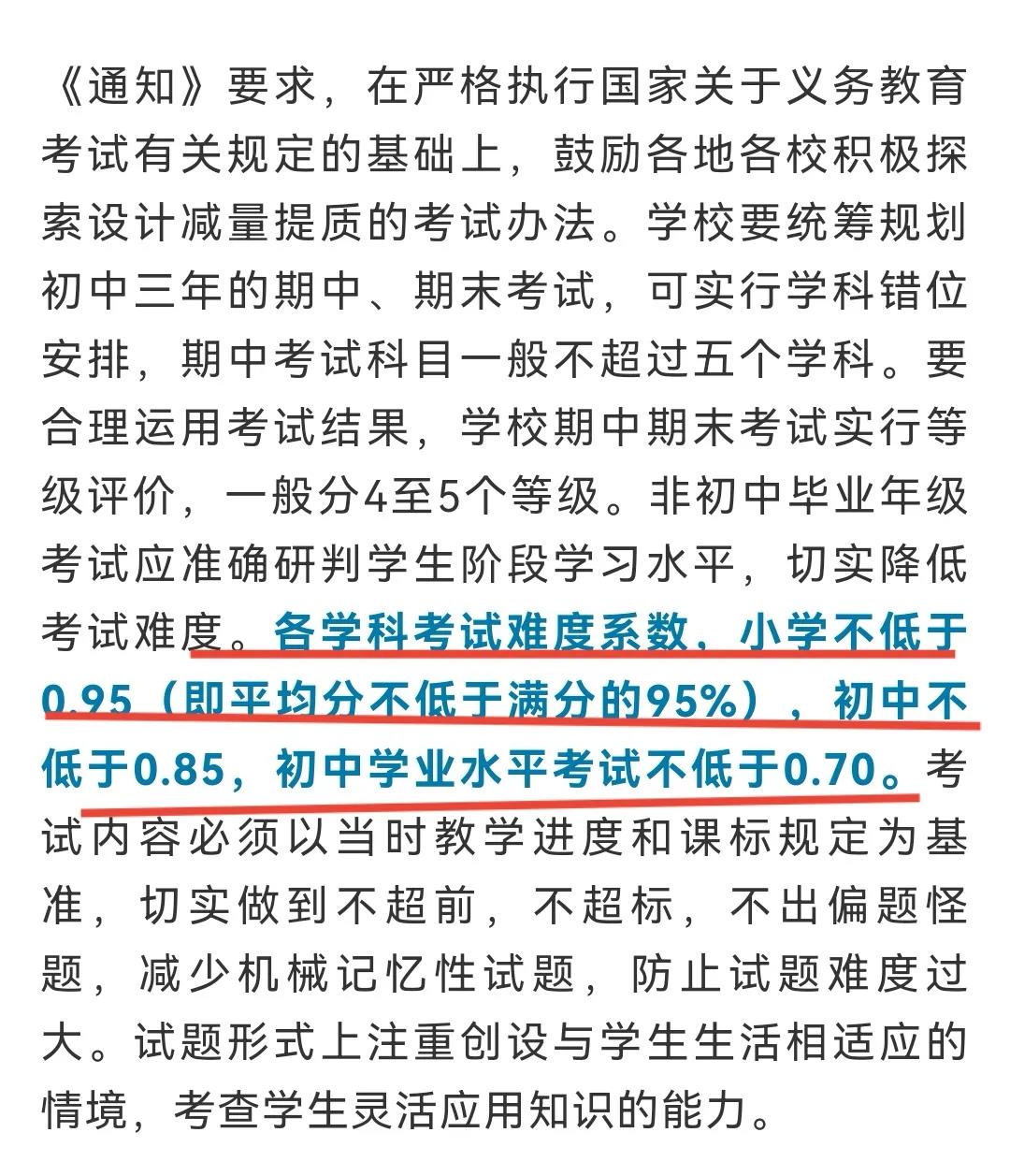 比如,“运动式”的减负大招不仅无法有效减负,连教育规律都不管了,老师也有很大的怨言。之前有新闻说,为了减轻中小学的课业负担降低考试难度,某地要求小学平均分不低于95分,初中不低于85分。这就有点那味儿了。