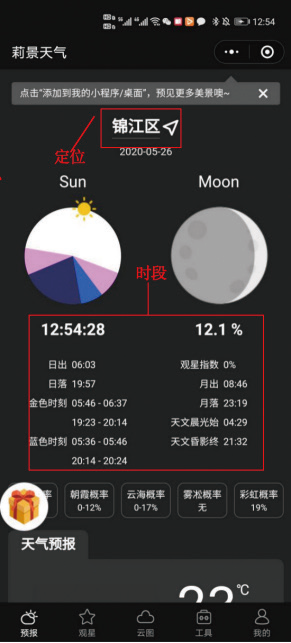 以前我们需要根据日出日落的时间进行推算,随着技术的发展,现在只需要利用巧摄中国版App或者莉景天气小程序等辅助软件来查询黄金时间和蓝调时间。