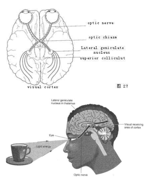 本章主要讲授四个方面的内容:五种神经元细胞;第二部分是:视网膜的传导路径;第三部分:三种神经节细胞;第四部分:脑中的视觉路径。本章介绍了视觉神经的回路系统。