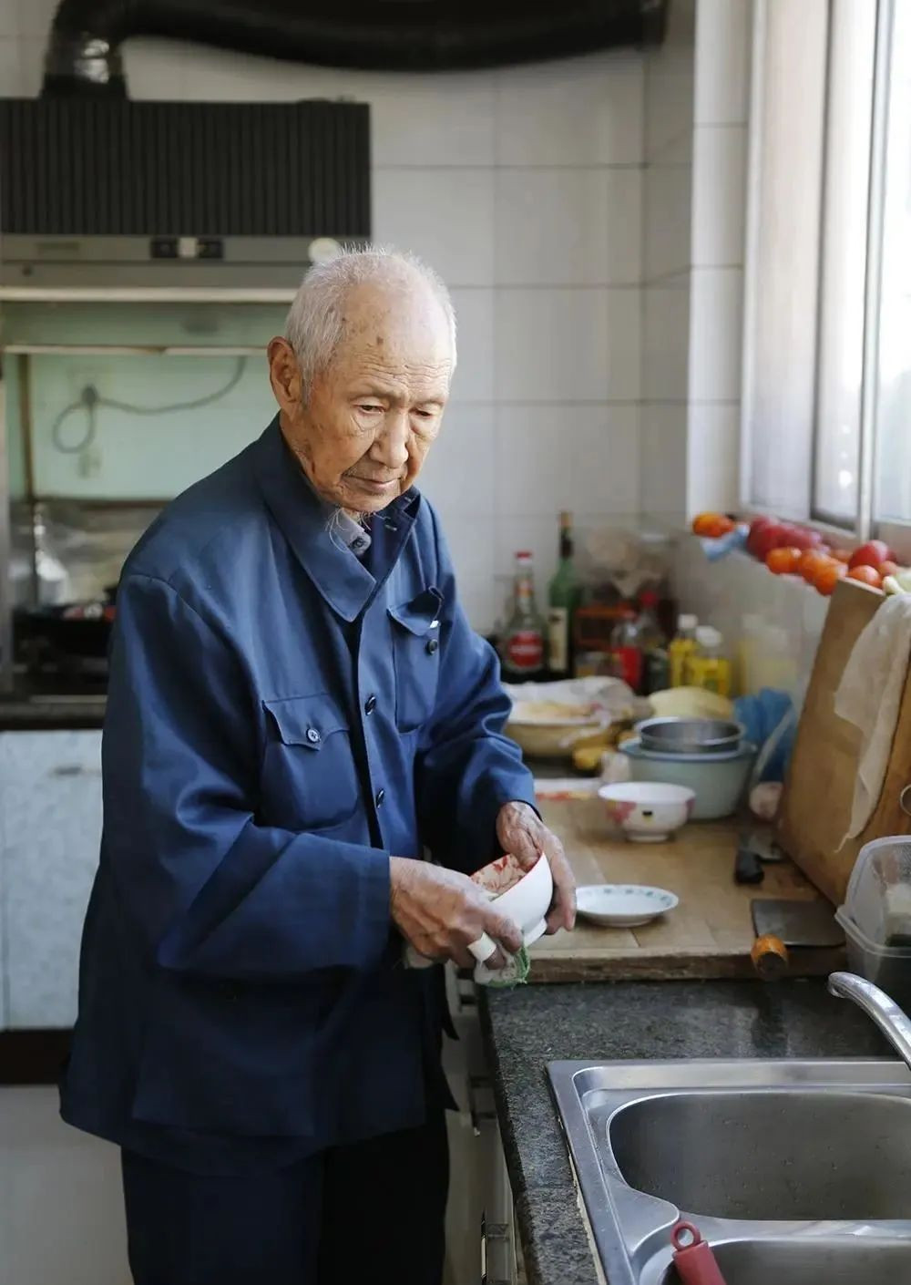 还得拖着一把老骨头洗菜做饭